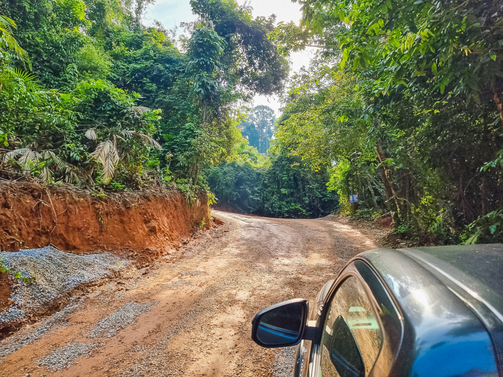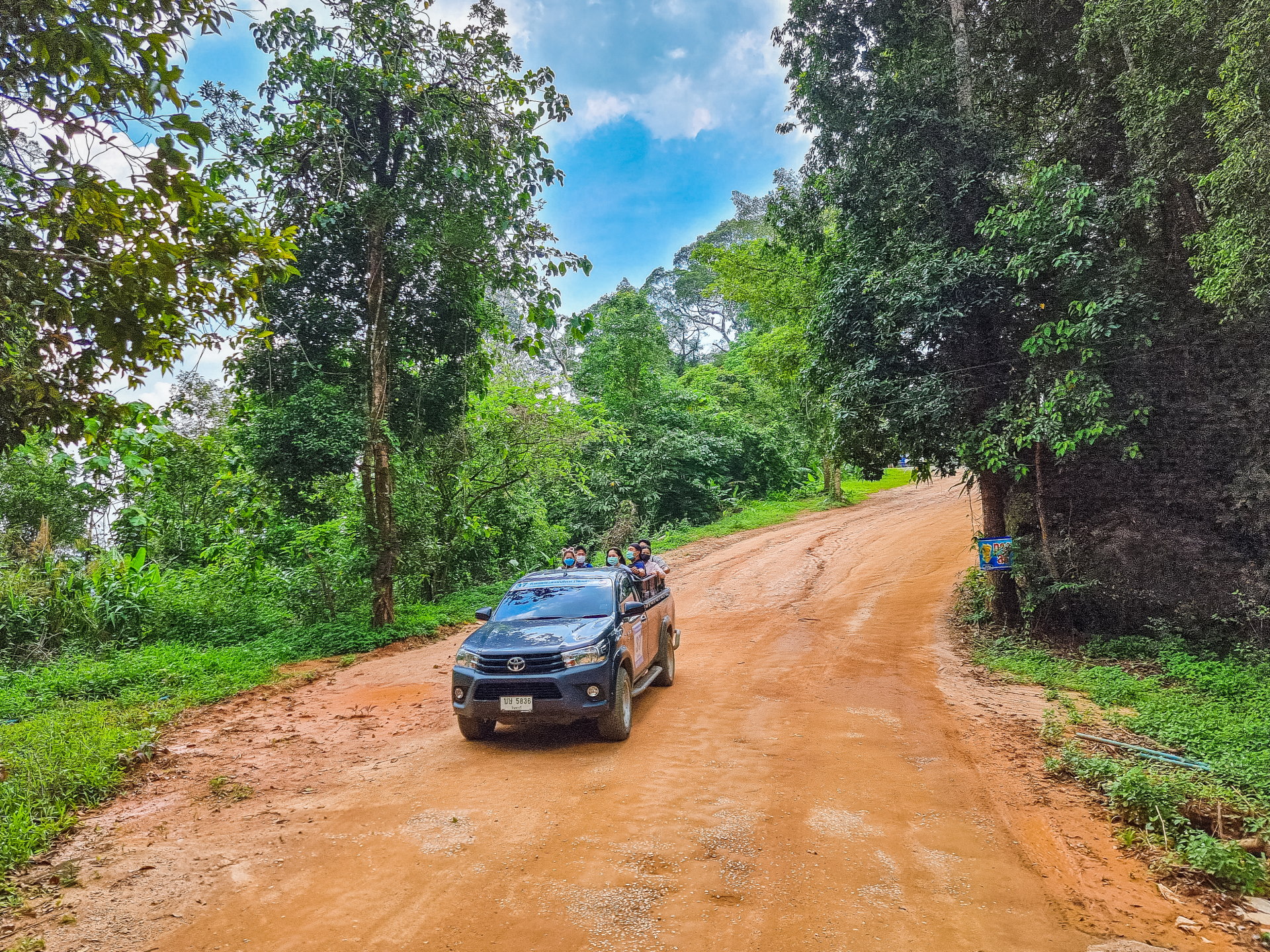 Ensuite, on est parti pour un trajet d’environ 30 minutes. On comprends vite pourquoi ces voitures sont nécessaires. La route forestière menant à Khao Phra Bat étant escarpée et surtout en mauvais état (chemin de terre), aucun véhicule privé n’y est autorisé.