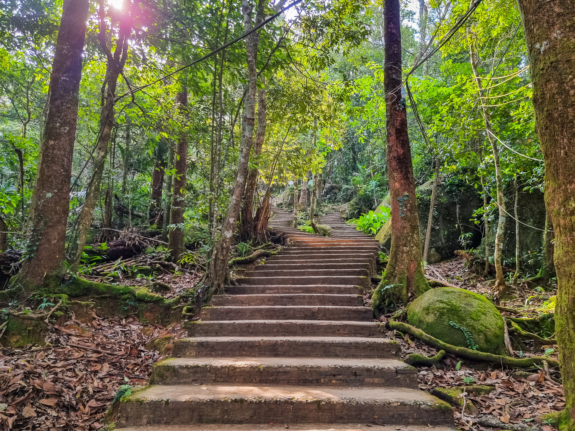 De retour sur les marches, on se faufile dans un passage étroit entre deux gros rochers, et après même pas dix minutes, on comprend qu’on touche au but : l’empreinte de Bouddha.