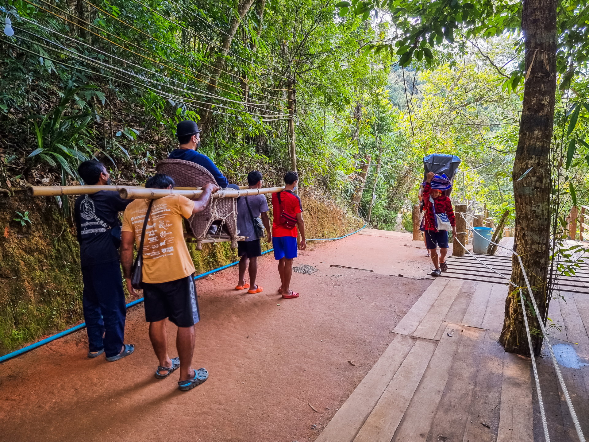 Pour cette raison, des porteurs sont présents au point de départ pour accompagner les personnes les plus fragiles jusqu’au lieu sacré.