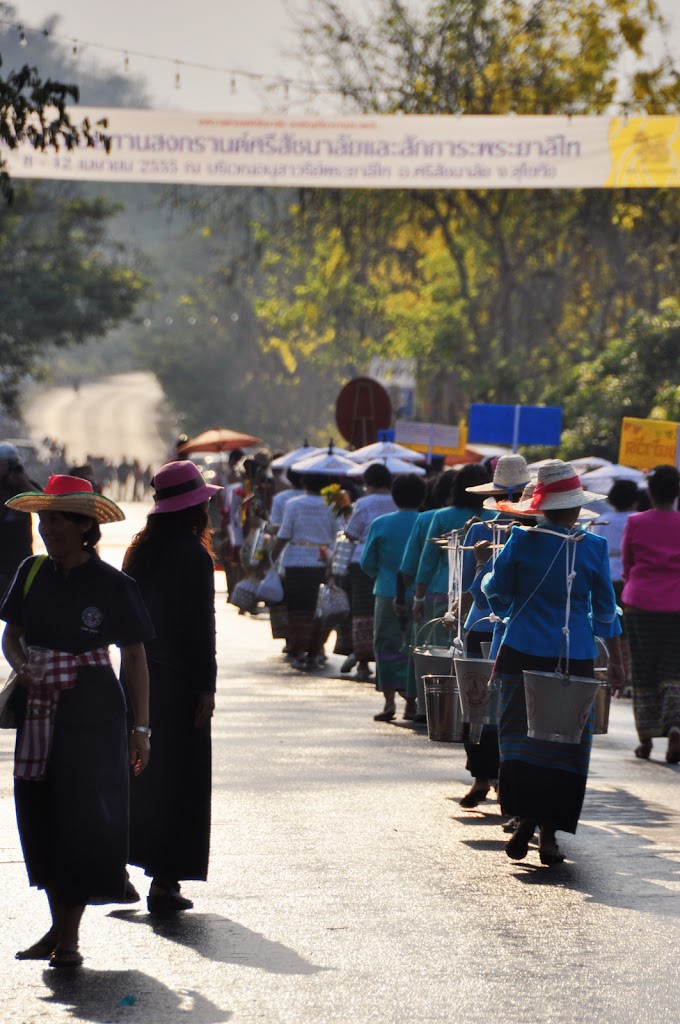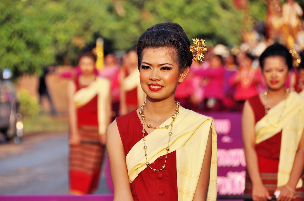 Retour sur les routes, nous allions là où nous avions croisés des préparatifs relatif au nouvel an Thaï pressentant qu’il allait se passer quelque chose. Ce qui sera le cas puisque nous verrons un long défilé de personnes en costumes avec les chars.
