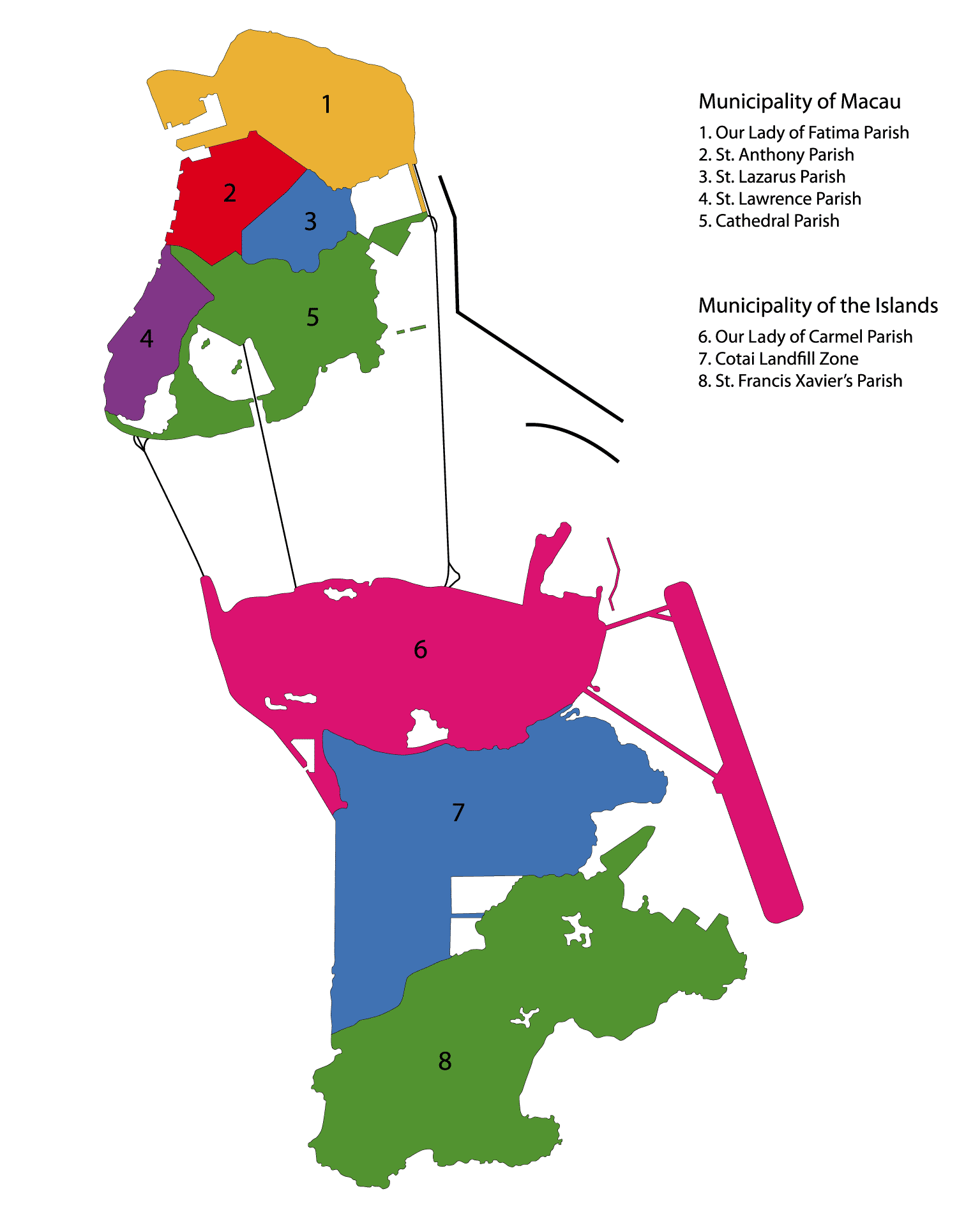 Macao est formée d’une péninsule au nord et, à l’origine, de deux îles au sud : Taipa et Coloane. Ces dernières sont maintenant reliées par des terres gagnées sur la mer. Ce nouveau quartier, le COTAI, reprend les premières syllabes de ces îles d’origine (COloane–TAIpa). C’est un mix entre casinos démesurés et petits villages typiques qui contrastent énormément.