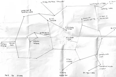 We can clearly see the loop from the day before starting from "We are here", heading north towards "pengilon and warna lake" passing towards Bima temple then the other temple before the central one of Arjuna. Today, we are heading towards "candradimuka crater" and its dringo lake which I mention later that we will not go that far, before that the first passage will go through the Jalatunda well. Knowing that having only names, we do not know at all what all this looks like...