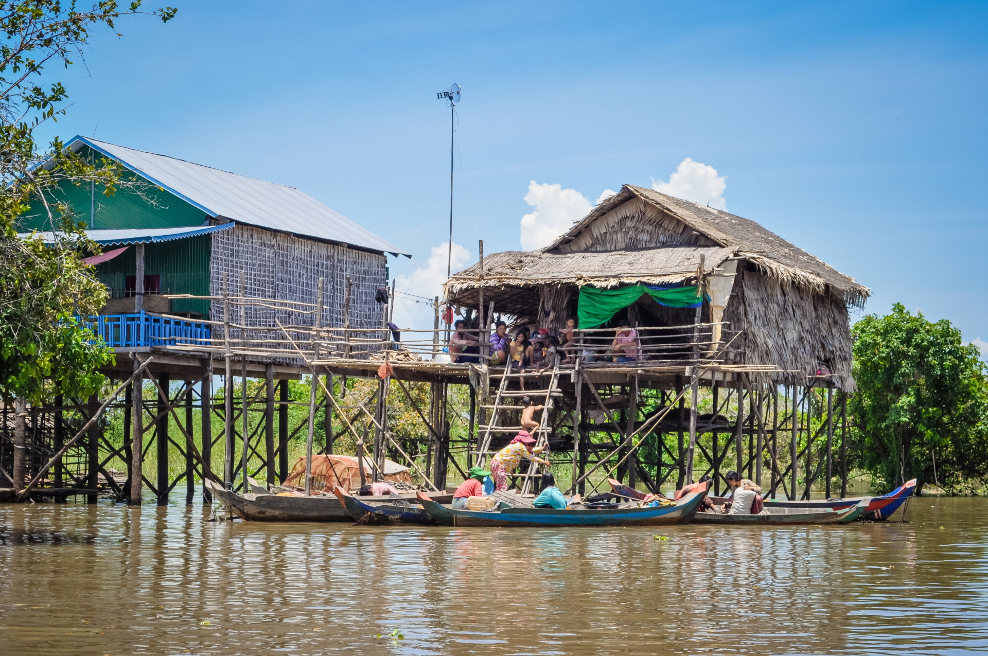 Kampong Phluk n’est pas à proprement parler un village flottant mais il est composé d’habitations sur pilotis pour faire face aux variations de niveau du lac. Sachant que celles-ci sont perchés sur une hauteur de 7 mètres (plus impressionnant à voir donc en saison sèche), ça laisse un peu de marge.
