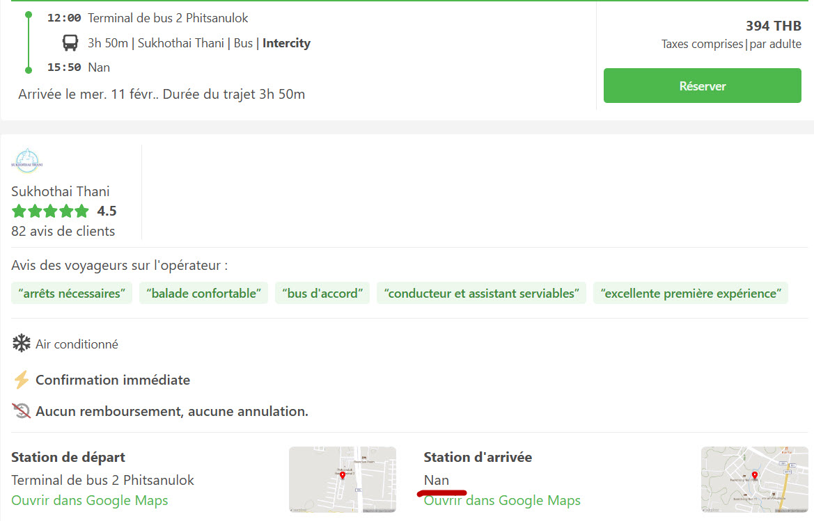 - Remarques : arrivée à l’aéroport de Nan à ~15 min du centre-ville en voiture/taxi