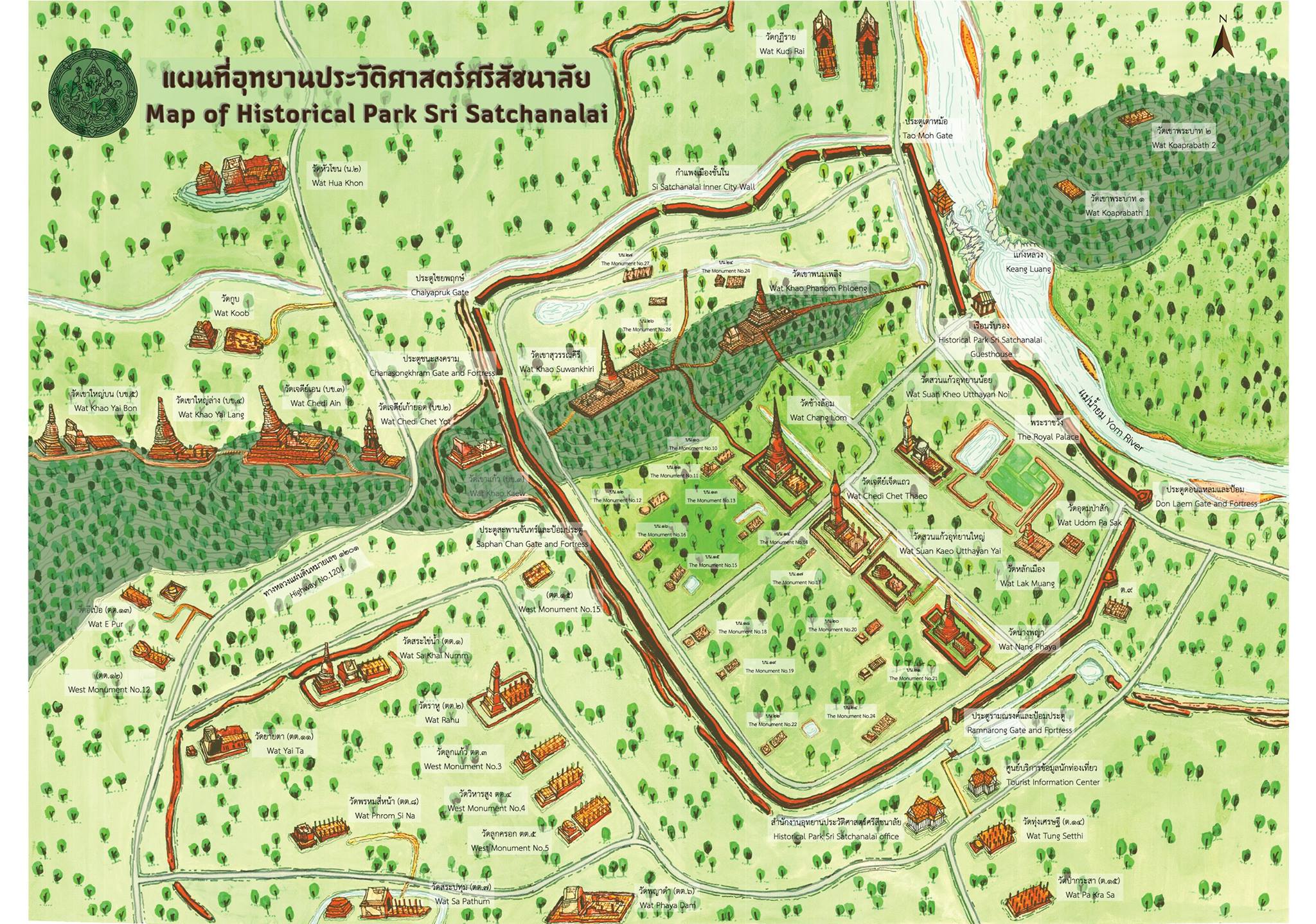 Pour visualiser l’ensemble et l’étendu du site, je vous mets une carte de Si Satchanalai.