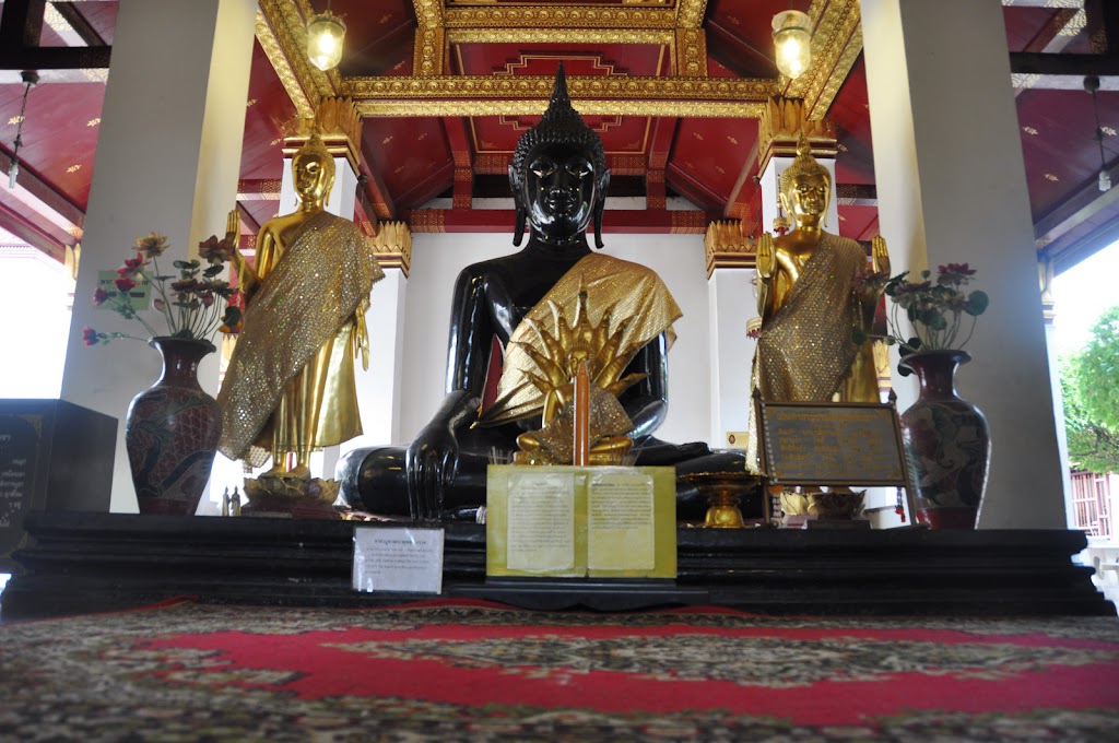 Cette 3ème journée marque le départ pour le trip dans le nord de la Thaïlande, plus exactement dans la région de Nan, avec pour ce jour une première étape à Phitsanulok, non pas que ce soit une ville immanquable mais bien pour éviter de se farcir une trop longue journée de conduite qui n’aurait que peu d’intérêt. Nous arrivions vers 14h après moins de 5h de route, le temps de prendre ses marques, trouver un resto ouvert dans le coin (curieusement y’en avait pas trop dans les environs), faire quelques courses (biscuits et eaux surtout, la chaleur fait fortune aux vendeurs de boissons…) cela nous laissait la fin d’après midi pour visiter les temples de Phitsanulok.